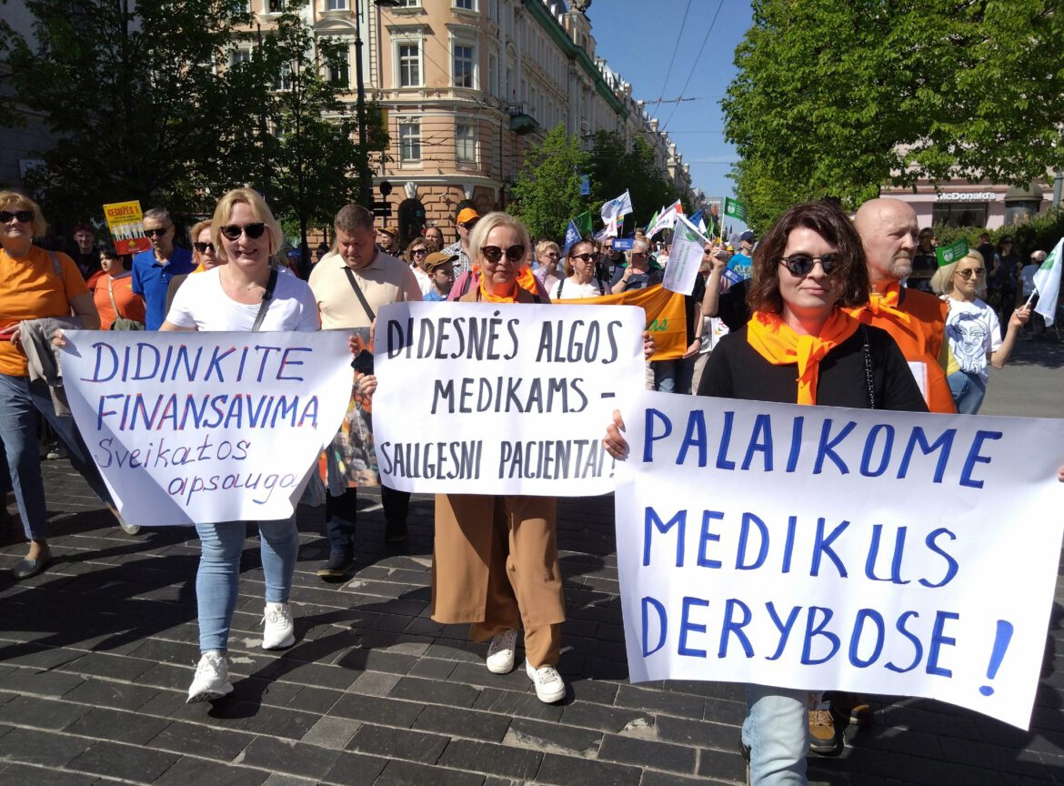 R. Jarošienė papasakojo apie derybų dėl Nacionalinės sveikatos sistemos šakos kolektyvinės sutarties eigą. Šiuo metu derybos yra nutrūkusios dėl ministerijos nenoro didinti medikų atlyginimus, bet įsikišus Ministrei Pirmininkei Ingai Ruginienei, tikimasi, kad tarp profesinių sąjungų ir Vyriausybės bus pasiektas susitarimas.