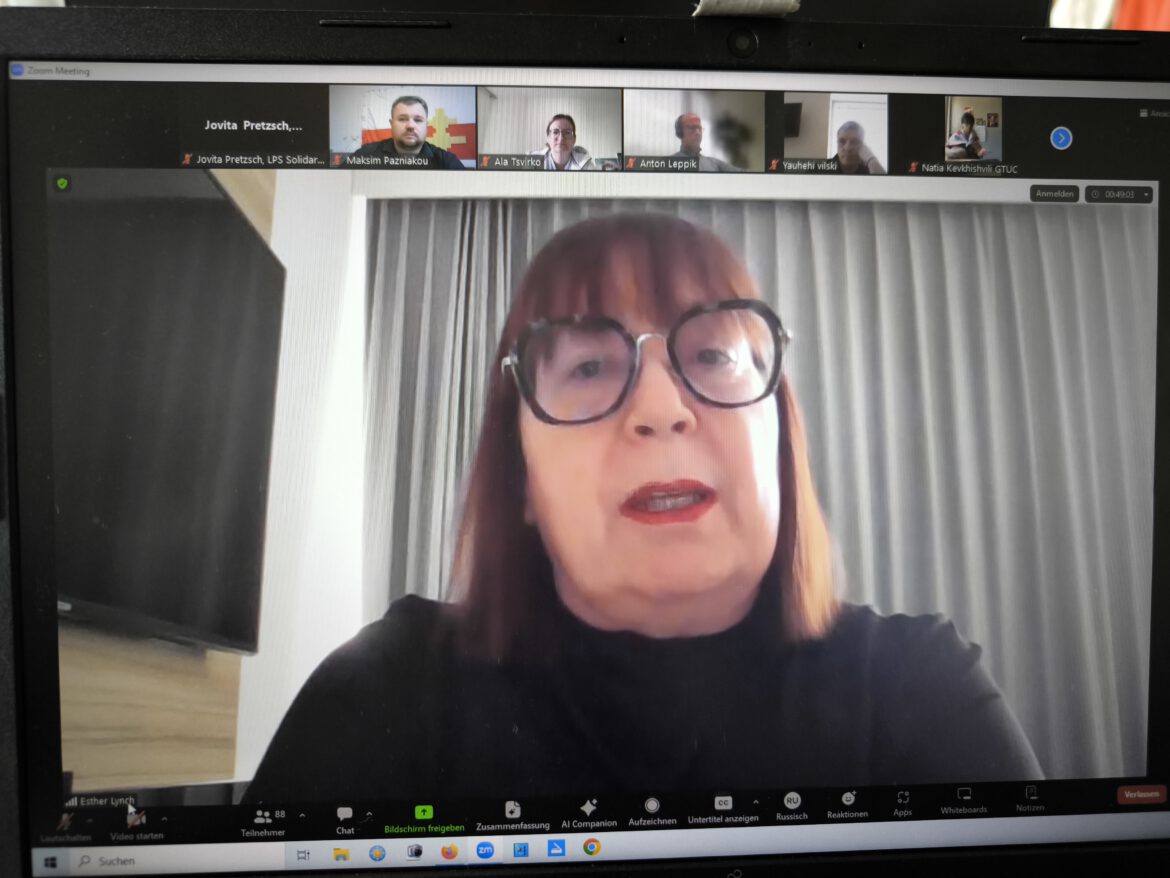 2024 m. balandžio 19 d. Europos profesinių sąjungų konfederacijos ETUC ir Tarptautinės profesinių sąjungų konfederacijos ITUC Europos regiono tarybos PERC buvo organizuota nuotolinė konferencija tikslu atkreiptio dėmesį į Baltarusijos profesinių sąjungų padėtį ir įkalintus profesinių sąjungų aktyvistus Baltarusijos kalėjimuose. Nuotoliniame renginyje dalyvavo LPS ,,Solidarumas” pirmininkės pavaduotoja Jovita Pretzsch.