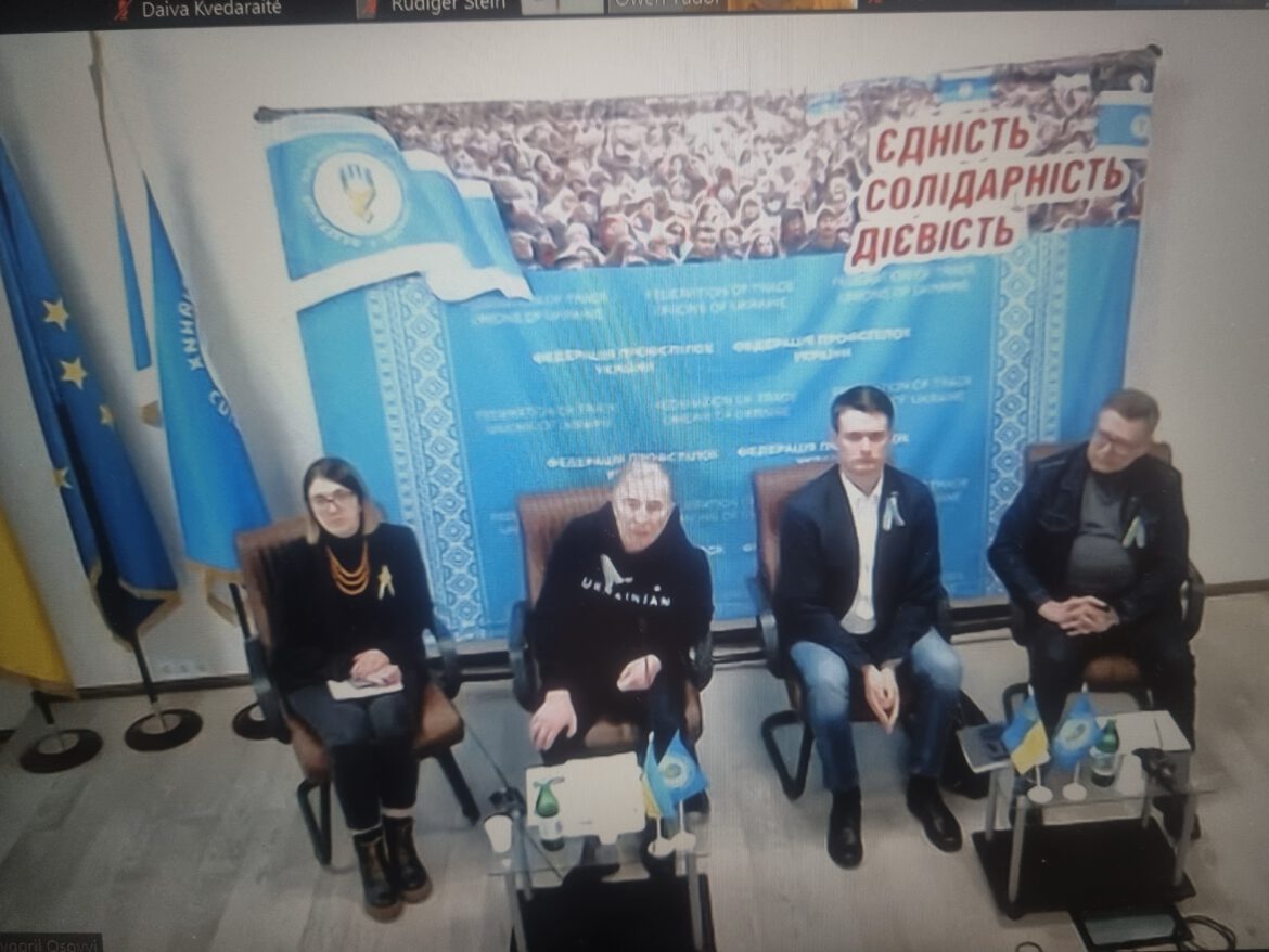 Nuotoliniame susitikime buvo prisijungę virš 220 dalyvių, tame tarpe ir LPS ,,Solidarumas” generalinė sekretorė Daiva Kvedaraitė, bei pavaduotoja Jovita Pretzsch. Susitikime kalbėjo profesinių sąjungų atstovai iš skirtingų Ukrainos vietų ir įvairių profesijų profesinių sąjungų atstovai. Ukrainos geležinkelio profesinės sąjungos atstovas pasidalino patirtimi, kokia buvo sunki karo kradžia, kai reikėjo evakuoti tūkstančius piliečių iš šalies. O ir dabar geležinkelis turi veikti, nepasinat visų trukdžių.