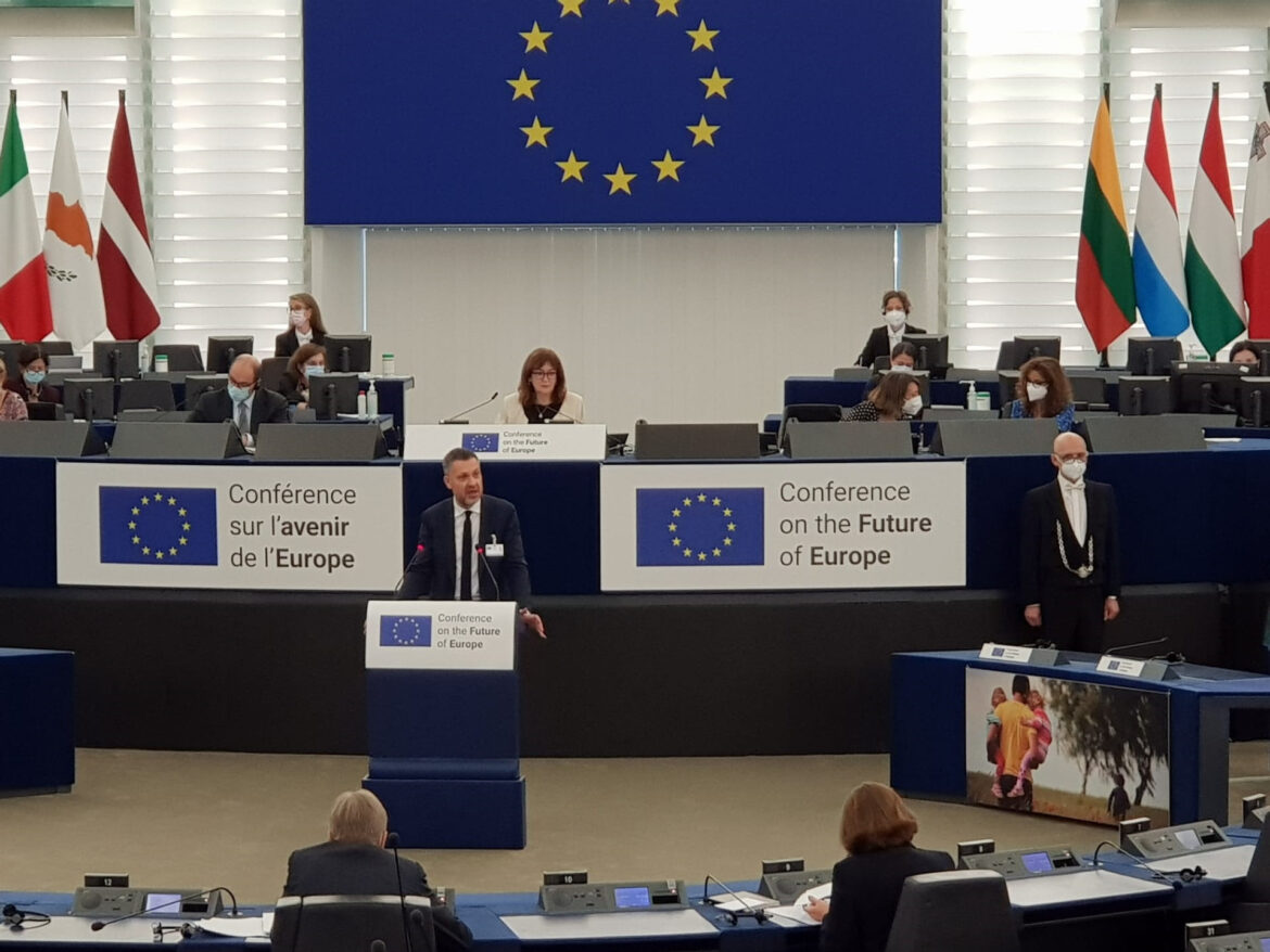 2021 m. birželį prasidėjusi konferencija dėl Europos ateities vyks iki 2022 m. balandžio mėn..