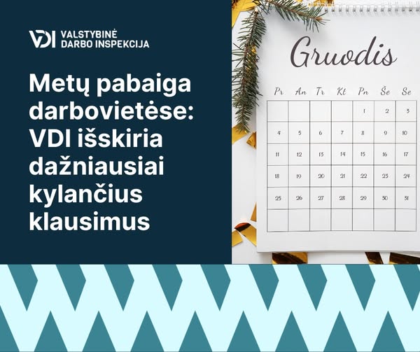 Artėjant metų pabaigai Valstybinė darbo inspekcija (VDI) atkreipia dėmesį į darbo teisės nuostatas, kurios šiuo laikotarpiu tampa itin aktualios tiek darbuotojams, tiek darbdaviams.