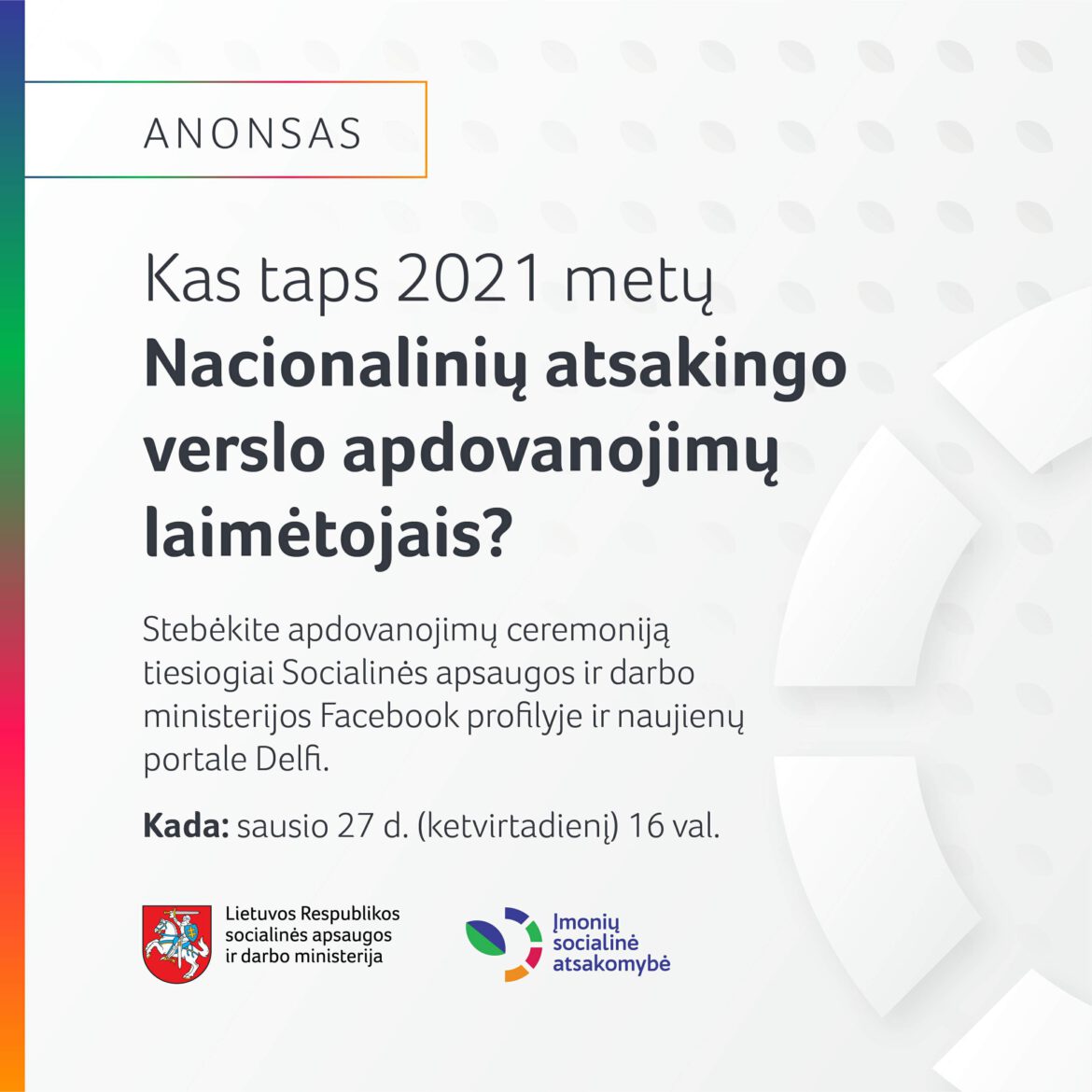 2022 m. sausio 27d. 16.00 val. vyks Nacionalinio atsakingo verslo apdovanojimai. Stebėkite tiesiogiai.