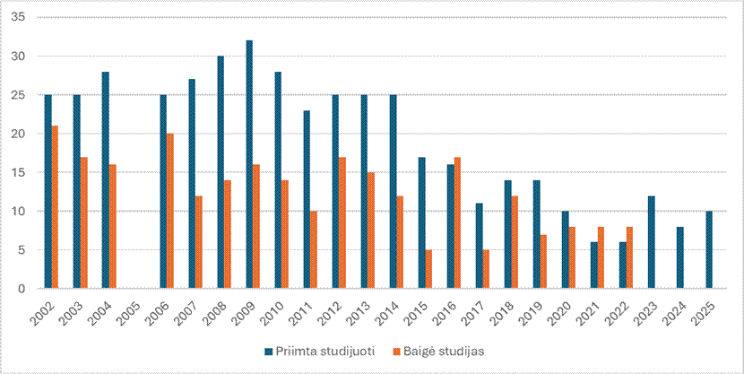 Profesinės sąjungos pirmininkė atkreipė dėmesį, kad Jeigu 2002–2003 mokslo metais į studijų programą buvo priimti 25 studentai, o studijas baigė 21 absolventas, tuo tarpu 2021–2022 ir 2022–2023 mokslo metais priimta tik po 6 studentus, o 2023–2024 m. ir 2024-2025 m. studijas baigė vos po 3 absolventus.