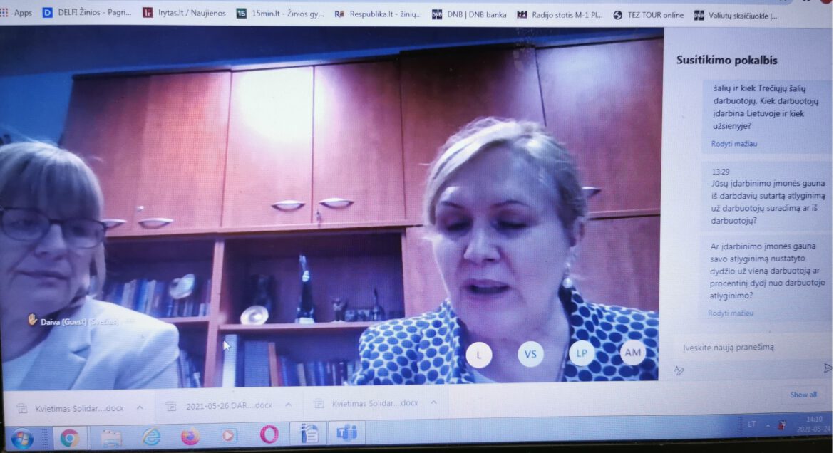 2021 m. gegužės 24 d. Lietuvos profesinės sąjungos „Solidarumas“ pirmininkė Kristina Krupavičienė, jos pavaduotoja Jovita Pretzsch, generalinis sekretorius Ričardas Garuolis, Užsienio projektų vadovė Daiva Kvedaraitė, teisininkė Lina Bertlingė nuotoliniu būdu susitiko su Lietuvos įdarbinimo įmonių asociacijos prezidente Aurelija Maldutyte ir valdybos nariu Valdu Strazdu.