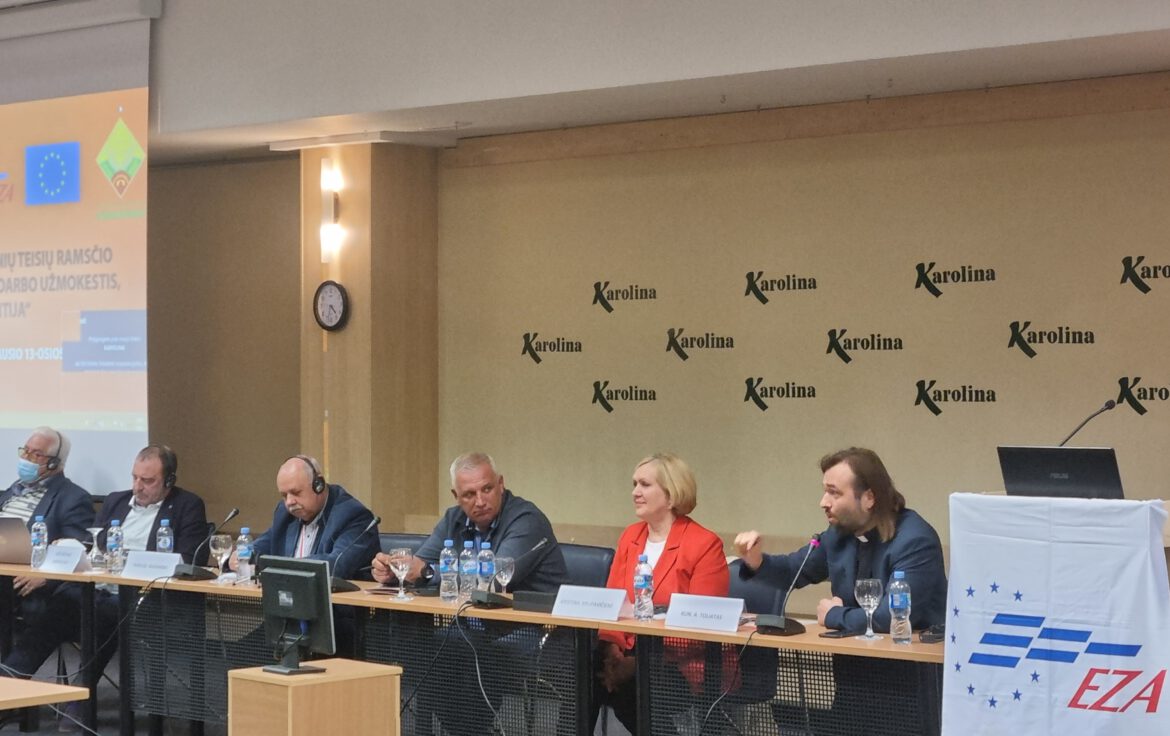 pasidalino savo patirtimi bei įžvalgomis (pranešimas pridedamas) apie nuotolinio darbo teisinę bazę ir pateikė praktinius pavydžius.